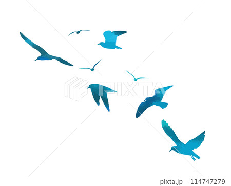 Flying blue seagulls silhouette. hand drawing. Not AI, Vector illustration