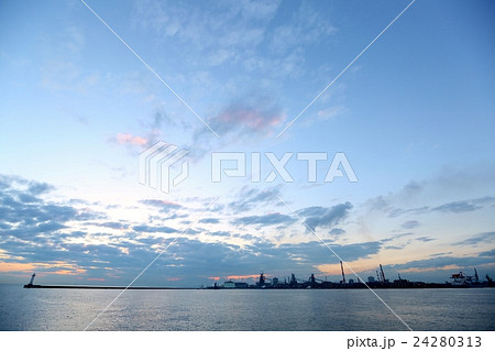 日落、雲彩、海、背景素材