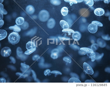 水族館の水槽でゆらゆら漂うクラゲの群れ