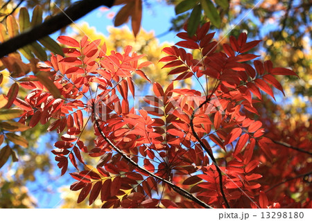 自然 植物 ハゼノキ、鮮やかな赤い色で秋の雑木林を彩ります