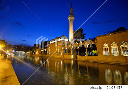 トルコ シャンルウルファのライトアップされたメヴリディハリルモスク