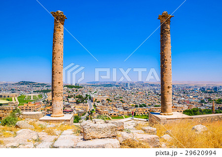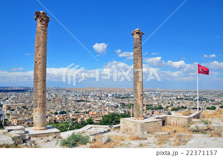 トルコ シャンルウルファのシャンルウルファ城の城壁と石柱
