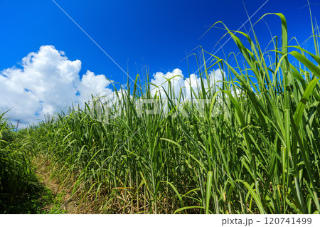 沖縄の風景 さとうきび畑、青い空、白い雲