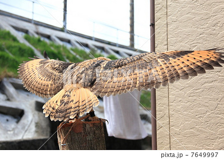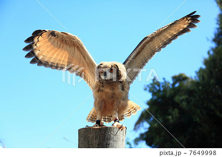 羽ばたく ミミズク ふくろう 猛禽類 ベンガルワシミミズク 雛