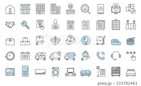 引越しのアイコン 荷造り 移動 素材 セット イラスト ベクター 不動産 ダンボール 家電 契約