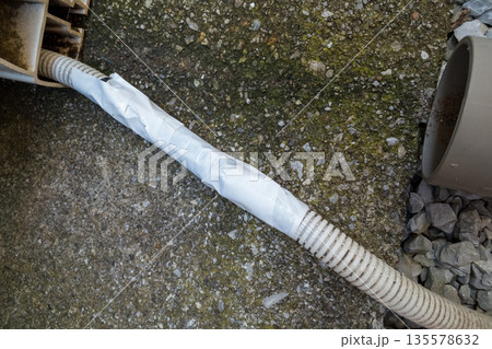 エアコン室外機のドレンホースが劣化していたので切断して新品と繋ぎ合わせた