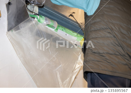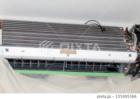 エアコンのクリーニングで部品を外して養生したところ