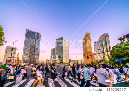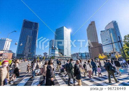 日本の横浜都市景観 10月。外国人観光客らで賑わう桜木町駅前の日本丸交差点。右方向は桜木町駅=13日