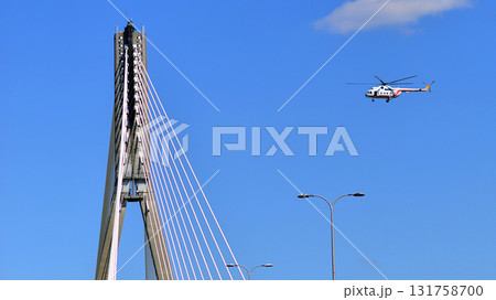 flight, low pass, poland, destination, aeroplane, aviation, skyline, aerial, famous place, scenic, bridge cables, cloud, air defense, air show, government helicopter, helicopter, over pass, cityscape,