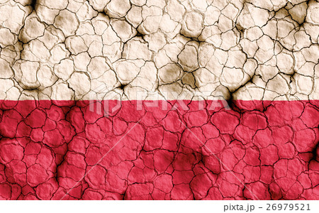 乾裂土壤上的波蘭國旗特寫紋理背景(高分辨率 3D CG 渲染∕著色插圖)飢荒乾旱自然災害
