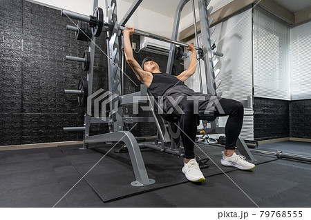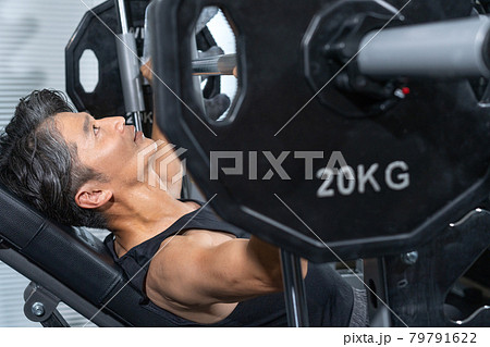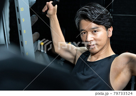 ジムで身体を鍛えるミドルエイジの男性