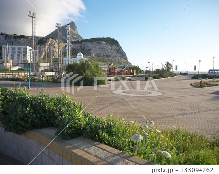 ジブラルタル海峡 エウローパ岬灯台のそばの公園の道 4月の早朝