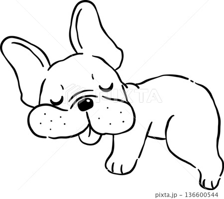 Sleeping French Bulldog Outline lying down Tongue Out Cartoon Hand Drawn