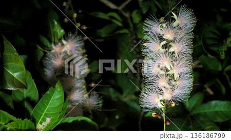 夜に咲く幻想的なサガリバナの群生 クローズアップ 沖縄