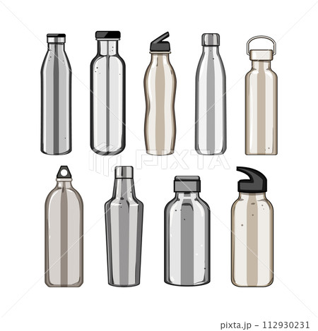 stainless bottle set cartoon vector illustration