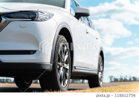 白いSUVタイプの乗用車