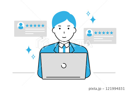 自社のネット上の高評価を見て喜ぶビジネスマン