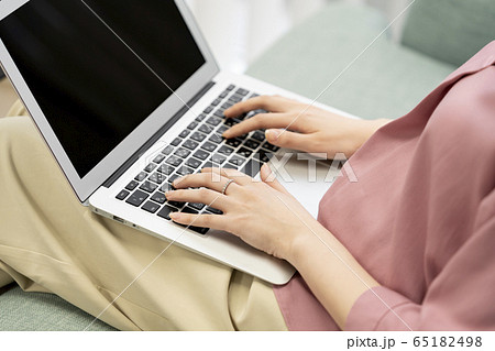 ノートパソコンを操作する女性の手元
