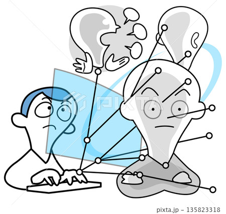 インターネットやSNSのコメントを検索するイメージ、吹き出しアイコン、虫メガネ