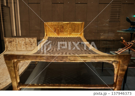 ツタンカーメンの副葬品に含まれる金彩の古代エジプト寝台