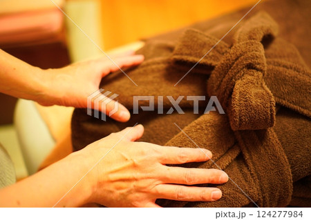バスローブを畳む