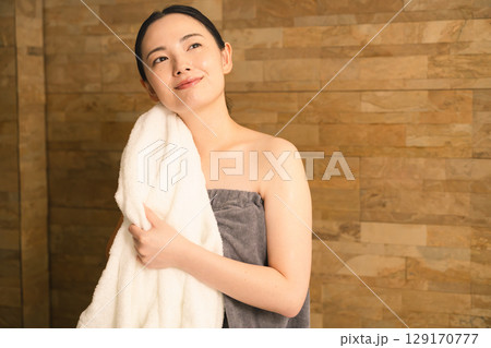 バスローブ姿のかわいい女性