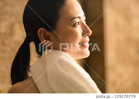 サウナで汗を流す若い女性 ビューティイメージ