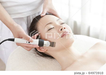 顔 美容機器 機械 フェイシャルエステ 美容イメージ エステ 女性 リラックス ビューティーイメージ