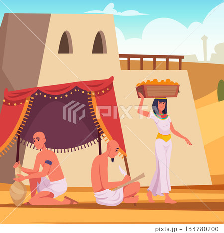 Egyptians. historical characters of egypt people on marketplace. vector background
