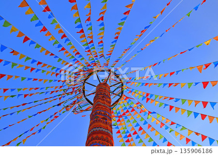 Maslenitsa holiday, decorative ethnic pattern, multicolored triangular flags