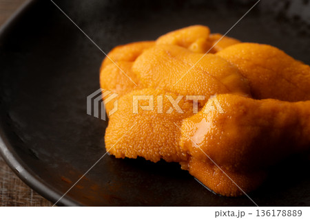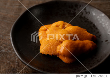 お皿に盛りつけた美味しそうな生のエゾバフンウニ