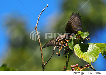 ミズキの木から飛び立つエゾビタキ