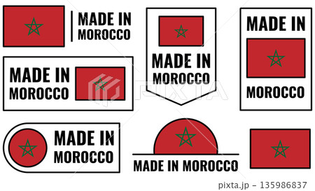 Set of icons showing Made in Morocco with flag design for Ethiopia product emblem