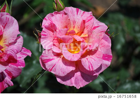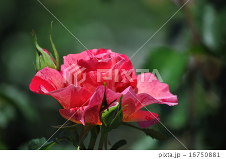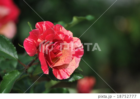 秋のバラのクローズアップ、赤ピンク絞りのエドガードガ