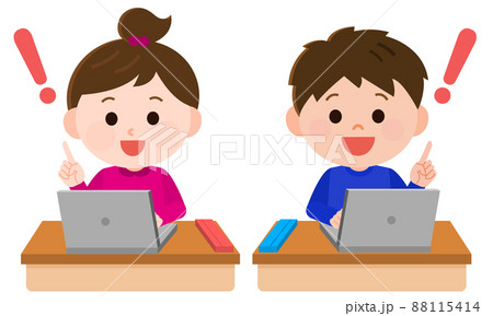 エドテック ノートパソコンを使った授業を受ける男の子と女の子1 イラスト