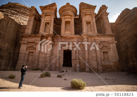 Asian photographer taking photo in Petra, Jordan