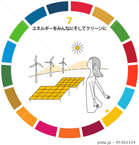 SDGs 目標7「エネルギーをみんなにそしてクリーンに」イメージ線画セット