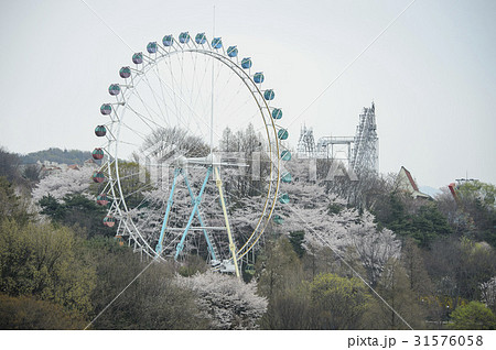 遊園地 乗り物 桜
