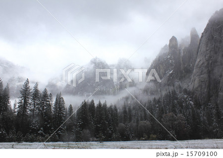 春雪の積もったヨセミテ国立公園