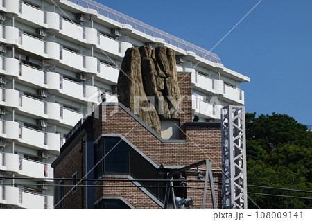 保土ヶ谷駅隣接のマンションの屋上の岩