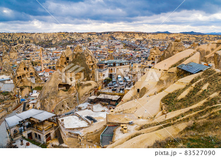 トルコ、カッパドキア、丘の上から見るウチヒサル