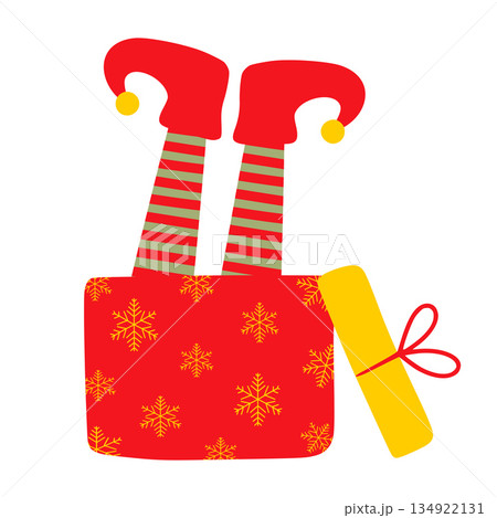 Christmas elf legs sticking out gift box
