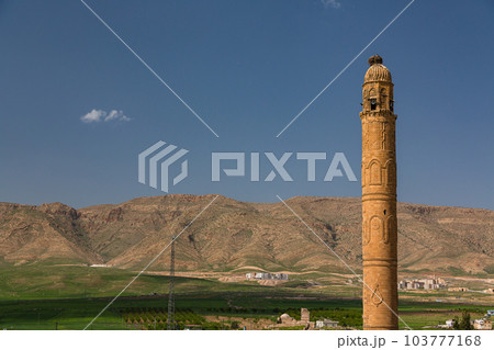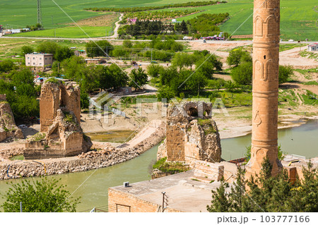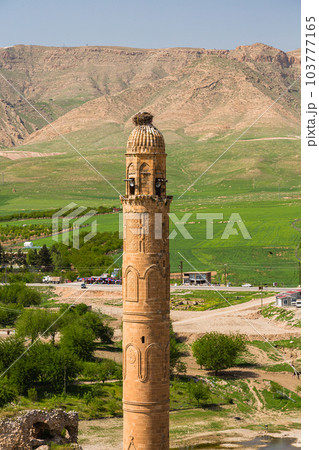 トルコ 水没前のハサンケイフに建つエル・ルズク・ジャーミーのミナレット