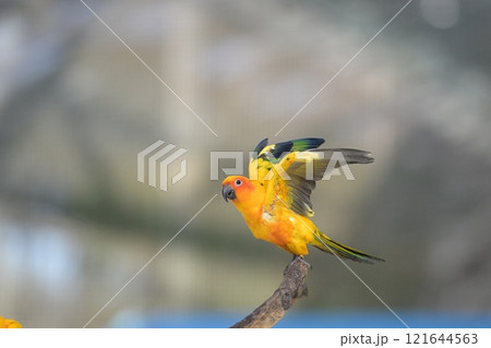 飛翔するコガネメキシコインコ