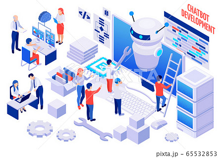 アイソメトリック、テレワークで学ぶ人たちのイメージ