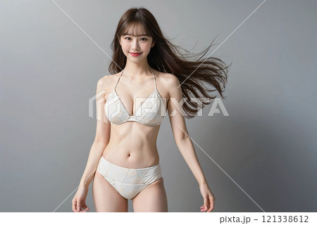 白いビキニを着た女性モデル