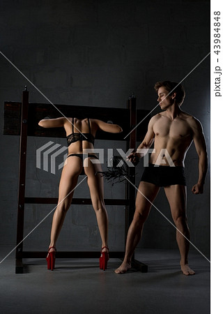 Man and woman acting erotic bdsm perfomance