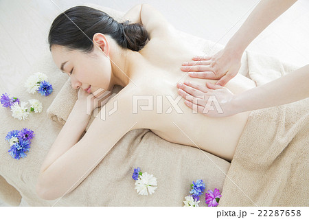 マッサージを受ける若い女性