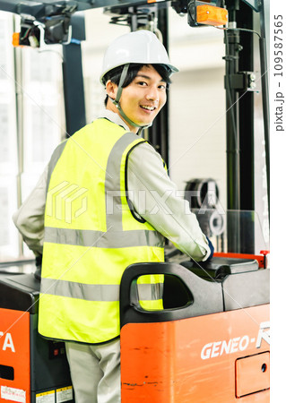 フォークリフトを運転する20代男性作業員