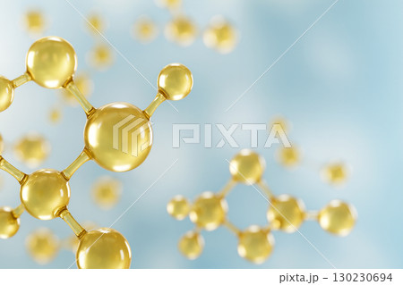 空に浮かぶ黄色い分子構造の美容成分イメージ